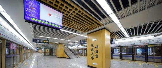 交通大学·兴庆宫站:从站点命名出发,以西安交大和兴庆宫宫殿建筑为主要表现元素,提炼交大校门造型和勤政务本楼的建筑结构,进行站点文化呈现。