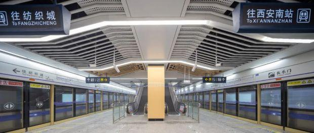 桥梓口站:设计重点体现站点附近的西大街仿唐建筑景观,作为一个时代的重要见证,体现站点深厚的文化底蕴。