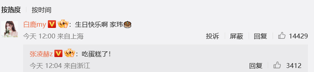 白鹿在评论区送上祝福:“生日快乐啊 家玮”,张凌赫没隔几分钟火速回复:“吃蛋糕了!”