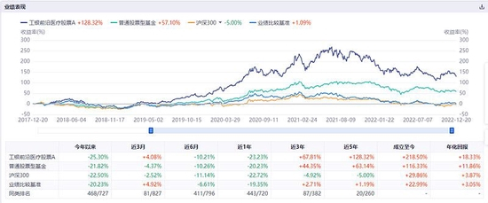 工银前沿医疗今年以来收益-25.30%,近6月收益-10.21%,成立至今回报218.50%,年化回报18.33%。历史最大回撤是2022年9月23日达到的-43.01%。