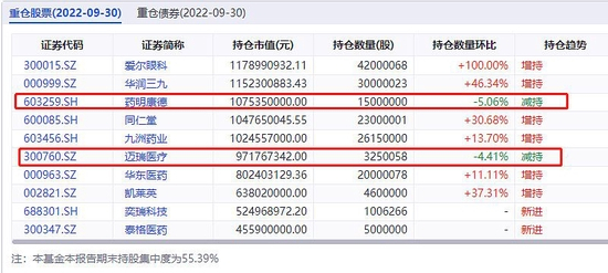 其中持仓数量环比增幅最大的是第一大重仓股爱尔眼科,其次是华润三九、凯莱英和同仁堂,持仓数量环比均增持超30%;持仓数量环比减持的有药明康德、迈瑞医疗,减持幅度不是很大,只是表明了一种态度。