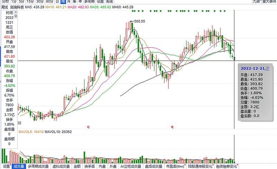 净利润不到5个亿,同比增速比较快,超1倍的增速,当前市值291亿。目前股票单价有点高,400元,一手4万元。