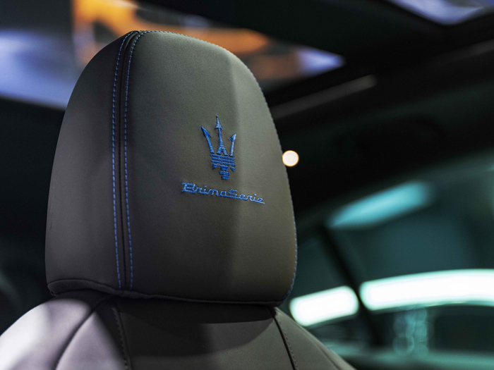 值得一提的是,黑色皮革配蓝色缝线是深海蓝涂装的独有内饰设计,营造更加个性鲜明的内饰氛围。头枕的三叉戟徽标配合“PrimaSerie”标识,于细节之处彰显尊贵的典藏身份。