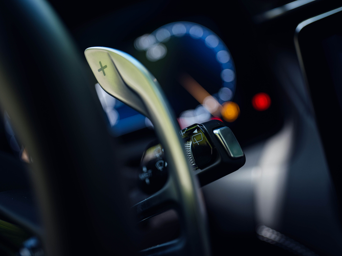 GT车型的内饰选用温暖且包容的色调:在黑色皮革之外,可选择浓郁的巧克力色高端皮革、精致浅咖色或配以对比色缝线的坚毅黑色。方向盘采用皮革包裹,配以固定的铝合金换挡拨片。