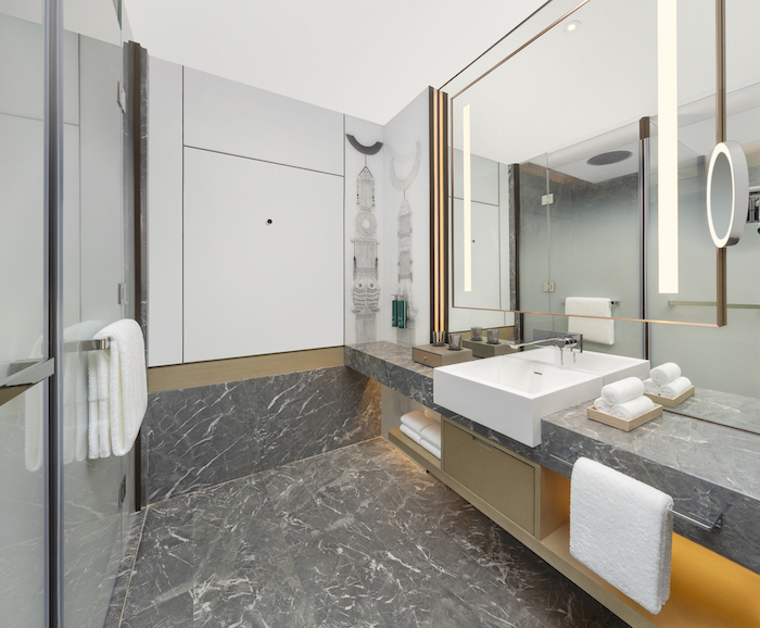 春城昆明,一年四季绿树成荫,绿色是昆明最具有代表性的颜色之一。昆明空港希尔顿逸林酒店从云南最常见的植物之一竹子以及山川湖泊的绿意中获取灵感,加入艺术化抽象演绎,运用于装饰设计中:例如全日制餐厅以深浅不同的绿色装饰墙面,呈现竹子在不同季节的色彩变幻,并与窗外的天然竹丛遥相呼应;云南的地貌特征、少数民族服饰、配饰元素也被广泛运用于客房的艺术画、床头装饰、和洗浴空间,让宾客能在移步异景中感受云南风情。