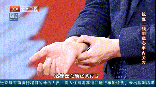 在按摩主穴的基础上,大家可根据自身症状的不同,加减特殊穴位或方法一起使用。1按揉内关穴手握拳,腕横纹上约三指宽,两根肌腱之内,就是内关穴。可以将拇指放在内关穴,食指放于对侧点揉。
