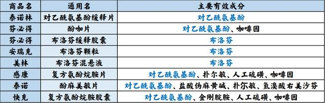 需要注意的是一些治疗感冒的药品除了含有对乙酰氨基酚、布洛芬外,还含有抗过敏减轻鼻黏膜水肿(流涕)成分氯苯那敏、伪麻黄碱,控制干咳成分右美沙芬可供搭配。