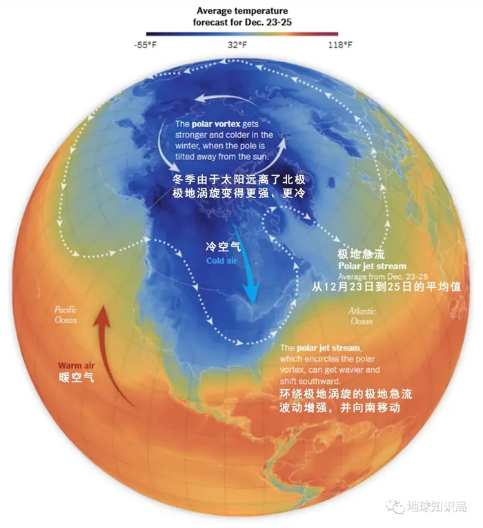而本月22日,美国国家海洋和大气管理局(NOAA)预测,随着冷高压前端的冷锋将于12月22日至26日自西向东横扫美国,带来严酷的暴风雪和断崖式的降温天气。