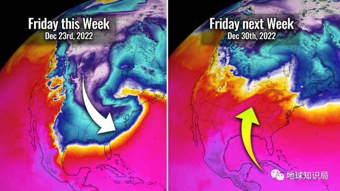 在未来几天内,随着极涡东移,美国的天气将在 2023 年元旦前的最后几天转变为更高的温度,12月30日的气温比29日高22-28℃,转为比往年偏暖的状态。
