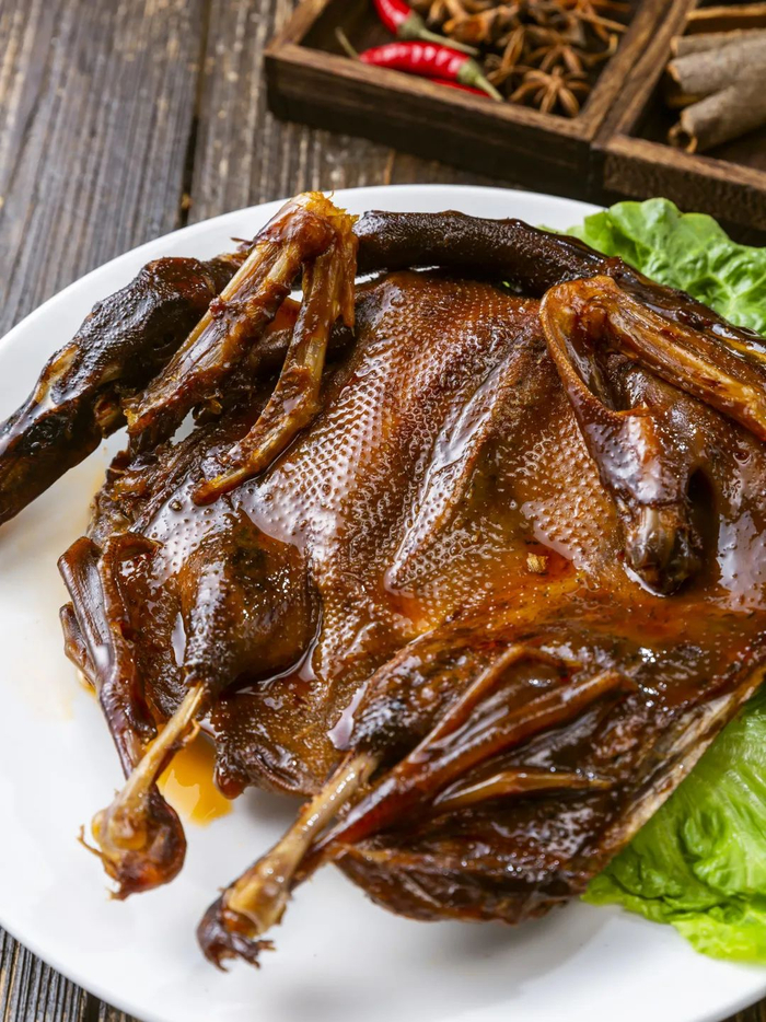 整只鸭子都很入味,滋味很足,鲜香味全沁入纹理了;骨头缝都是香的,每一口都踩在味蕾尖上!