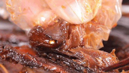 2、自有酱卤配方熬制,添加30多种香料,经过49道工序,味道沁入骨头缝。
