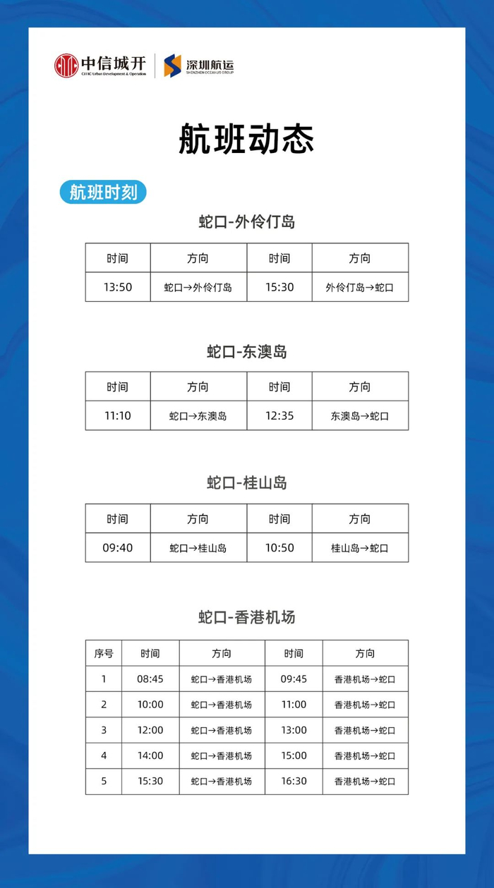 深圳蛇口至香港机场、各海岛航线