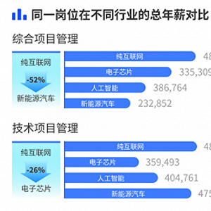 此外,软件开发工程师在互联网行业平均税前年薪为553,920元,依然高于电子芯片行业(445,020元)、人工智能行业(419,577元)、新能源汽车行业行业(415,739元)。从纯互联网行业跳槽到新能源汽车行业,薪资约减少25%。