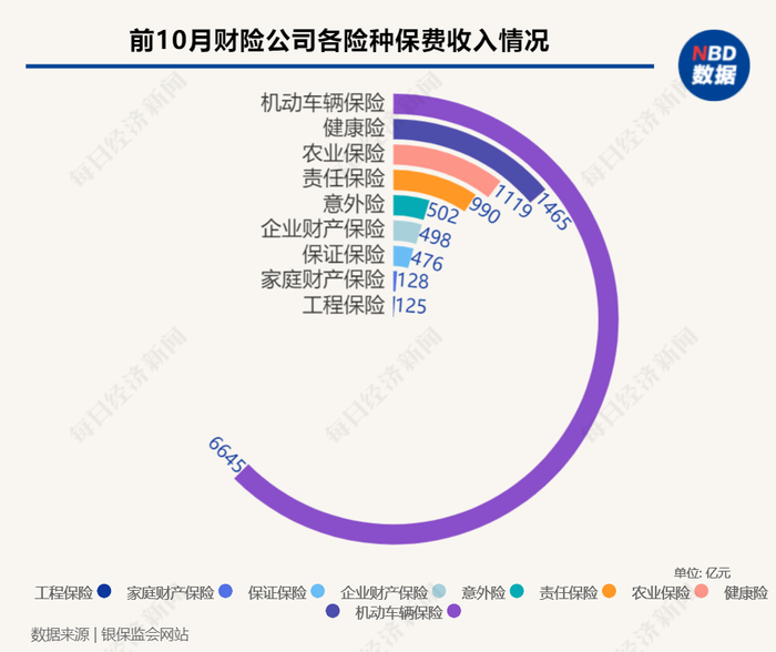 银保监会数据显示,2022年1-10月,财产保险公司实现企业财产保险保费498亿元,占财产险公司原保险保费收入的3.97%,相比疫情前2019年占比3.6%并没有显著变化,而在这当中“营业中断险”的占比更是微不足道。彭桓估算,作为企财险的一种附加险种,营业中断险可能仅有几个亿的保费规模。