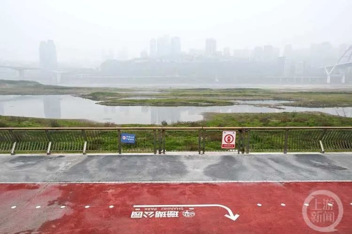 在此次改造提升中,建设方利用公园沿江的视线优势,打造了180°无敌江景,漫步在公园能将珊瑚坝尽收眼底,是拍摄珊瑚坝“心湖”的绝佳视角。