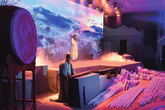 琴茶交融,共浴清音。“壶山兰水福鲍平安”莆阳文化雅集活动,共分《山水序》《尤见初心》《愉见其乐》《凝香归一》《水天一色》《和》六个篇章,现场在“十二道莆仙名菜”唯美生动的视频下,穿插融入古琴、文枕琴等乐器演奏,名曲欣赏和莆仙戏表演,巧妙融合自然山水之音、文化雅致意境,在美轮美奂的声光影衬托下,呈现十二道莆阳名菜丰富外表和内涵,在视听味三重盛宴中,与会嘉宾沉浸式体验“舌尖上的莆田”。