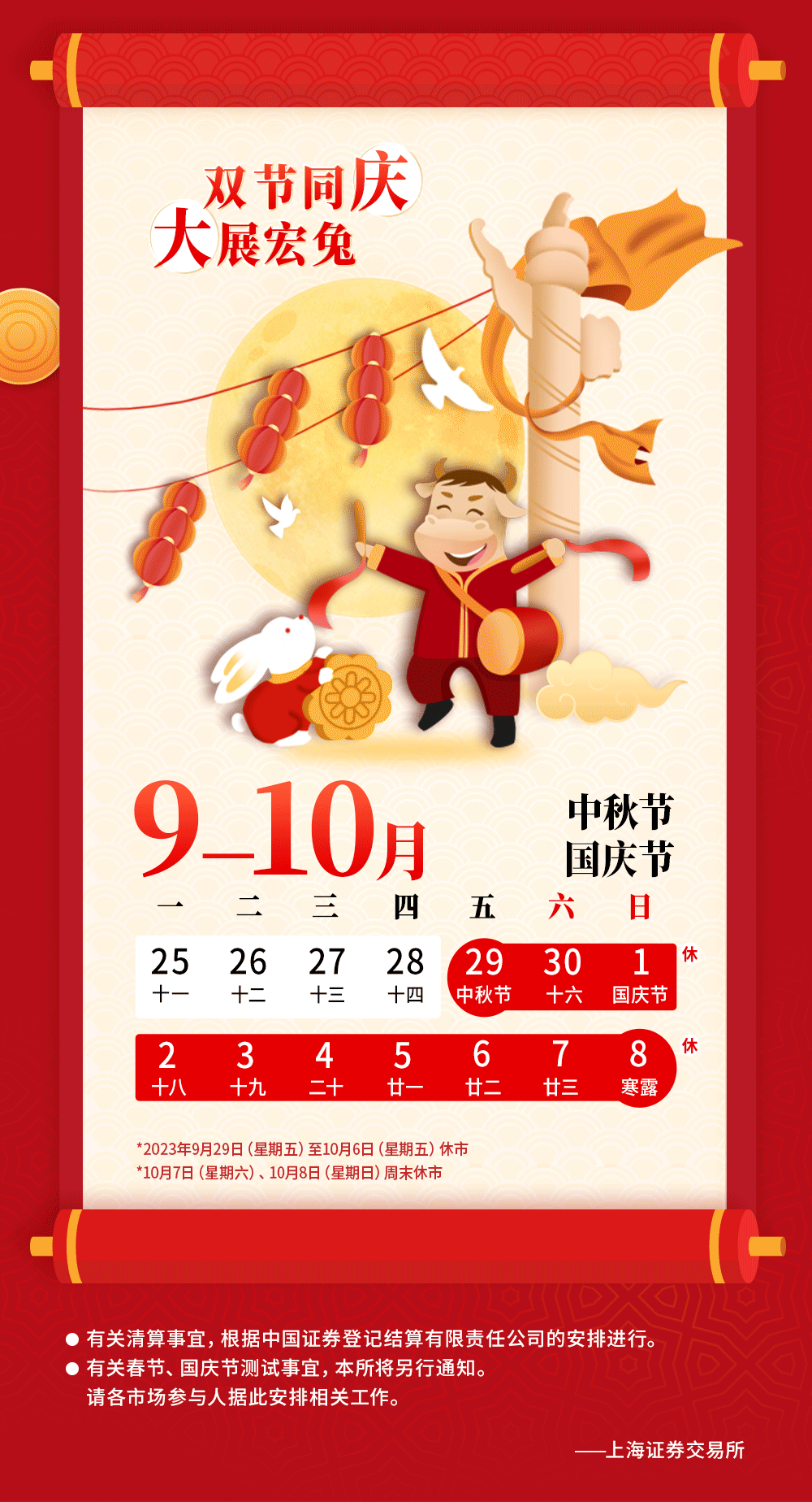 上交所2023年交易日历 上交所发布 2023.01.0108:00 关注 根据中国证监会《关于2023年部分节假日放假和休市安排的通知》(证监办发〔2022〕113号)要求,上海证券交易所现将2023年全年休市安排通知如下。