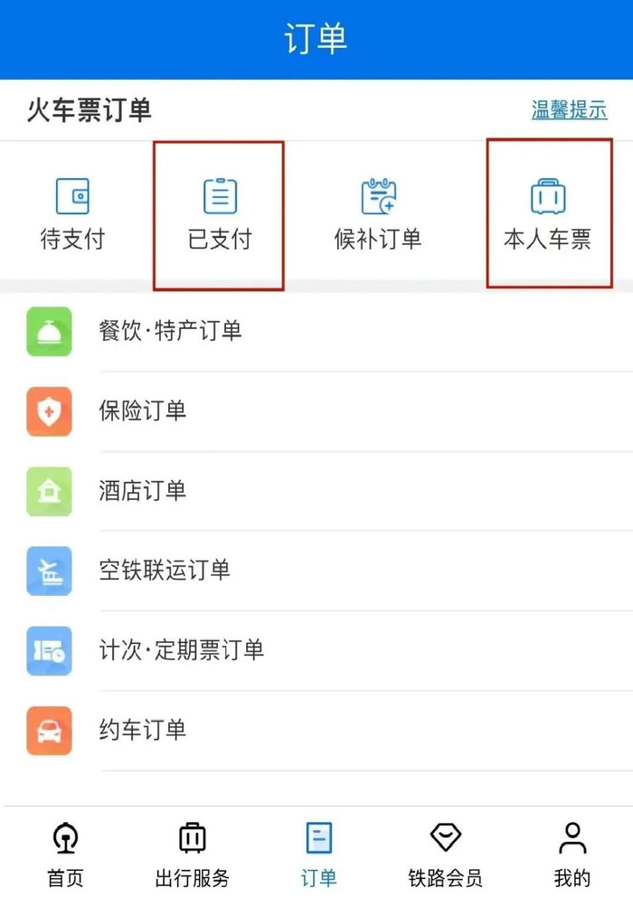 通过铁路12306客户端办理时,需在“订单”界面中选择“已支付”或“本人车票”。点击顶端出现提示中的“去添加”,勾选需携带免费乘车儿童的成人信息,点击“添加免费乘车儿童”后“确认”即可,申明时提供的证件,乘车时要带着。