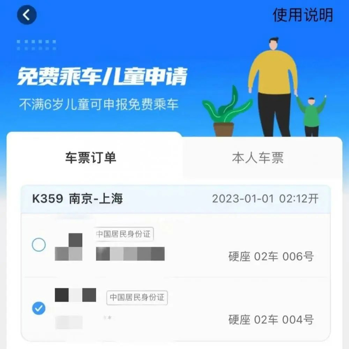家长可以在铁路12306手机客户端的“乘车人”中添加儿童信息。