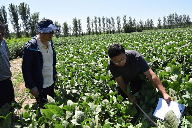 田间考察高油酸大豆。