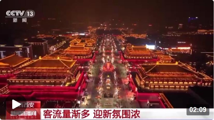 总台记者 吴成轩:我现在所在的位置就是古城西安大唐不夜城的主街道,在这里首先跟大家说声“新年快乐”。虽然夜已深,室外温度只有0℃左右,但客流量还是在逐渐增多,据官方统计,跨年夜这里的游客达到6万余人。游客回来了,不夜城街道两旁的商户现在已经全部营业,而且部分商户告诉我们,这几天,营业额持续攀升,甚至翻倍。