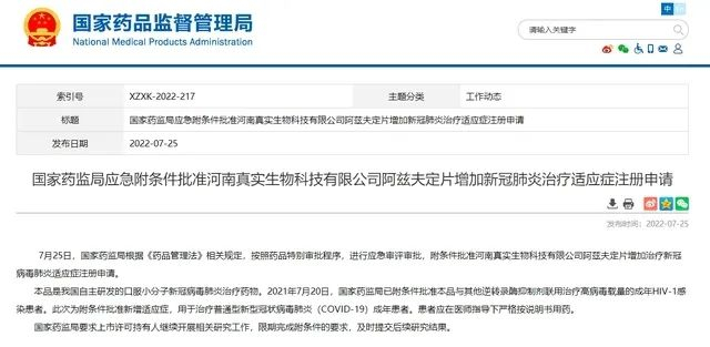 事实上,早在今年7月25日,完全具有中国知识产权的新冠口服药——阿兹夫定获得了药监局的审批,这是当时继辉瑞的Paxlovid之后,国内上市的第二个新冠口服药。