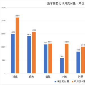 1月1日,多家主流造车新势力悉数公布2022年12月交付数据,2022年全年销量表现也随之出炉。2022年12月,理想汽车以2.13万辆的成绩夺下冠军,这也是造车新势力们首次踢开两万辆月销量的大门,“老大哥”蔚来汽车以1.58万辆位居第二,第三名则是造车新势力中的新秀——吉利旗下极氪汽车,交付量为1.13万辆。