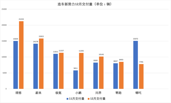 2022年造车新势力的竞争最后一个月出现变数,数次领跑销量榜单的哪吒和零跑意外在12月垫底。
