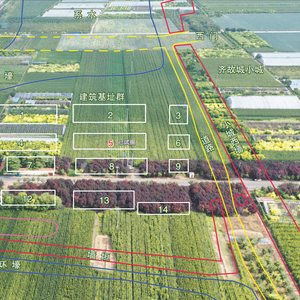 经过近五年考古挖掘,专家采用“排除法”解决了一系列疑问,地层关系清楚,形制初具轮廓,从文献、方位、考古发现等方面看,基本可以判断稷下学宫所在。建筑基址群东与齐故城小城相接,南宽北窄略呈直角梯形,东西最宽约210米、南北长约190米,总面积近4万平方米,共发现四排建筑基址。建筑基址群处于封闭区域内,外围有墙垣与壕沟,其中壕沟与小城城壕相接为一体,建筑基址群与小城之间发现道路,向北通往小城西门,向南通往小城南门。