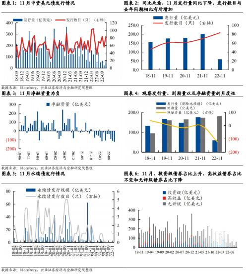 一、中资美元债一级市场:11月中资美元债净融资规模为负