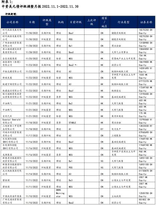 就评级[2]层面而言,11月发行的中资美元债中,无评级债80只,投资级债3只,本月无高收益债券发行。从发行金额来看,无评级债券发行规模环比有所上升(本月48.59亿美元,上月24.19亿美元)。