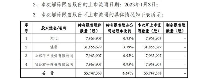 三年之后,该家族所持的定增股份终于迎来解禁。据艾迪精密公告,三年前上市的5574.7350万股定增股份,将于2023年1月3日上市流通。这意味着,温氏家族所持股票即将迎来“全流通”时刻。