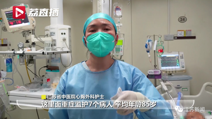 在医院心胸外科,非紧急手术已经暂停,普通病房和重症监护室全部用来收治重症感染者。心胸外科医护们介绍,因感染后伴有肺炎,不少病人都在用呼吸机支持治疗。心胸外科里重症监护的7个病人,平均年龄85岁。