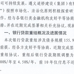 遵义道桥银行贷款重组方案公布:155.94亿展期20年,前10年仅付利息