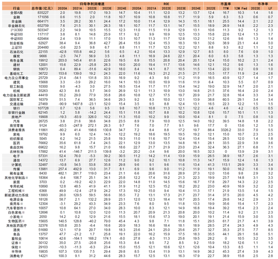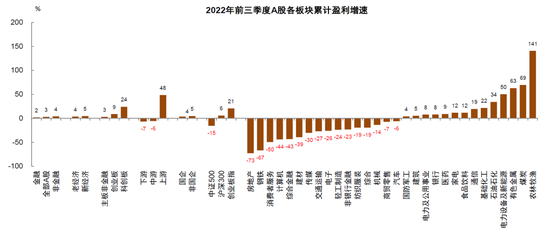 图表46:2022年前三季度板块和行业盈利增速分化,中上游的老经济行业增长明显更高