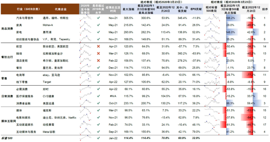 图表28:美国商品消费板块表现最好,出行休闲股价尚未修复到疫情前