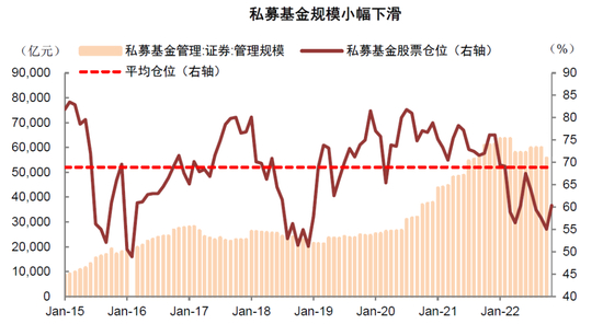 图表56:2022年私募基金规模小幅下滑,仓位较低