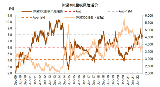 A股整体估值回落,逐渐具备中期吸引力。2022年A股估值整体回落,沪深300的动态市盈率在10月31日一度回落至8.6倍,为2015年以来最低水平,相比年初回落26%;创业板指和科创50等指数的高估值也得到一定程度的消化,创业板指动态市盈率当前回落至23倍,处于2010年以来20%的分位。从股权风险溢价的维度,2022年10月31日,沪深300的股权风险溢价上升至8.99%,超过2018年12月和2020年3月的水平,经历年底的修复后,大约仍处于历史均值0.9倍以上的标准差位置,仍然具备中期吸引力。