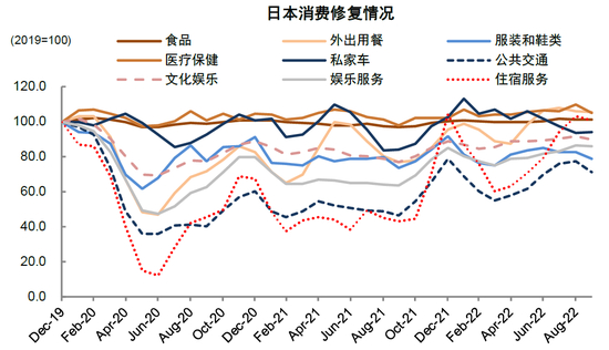 图表26:防疫放开后,日本的住宿服务和外出用餐等服务消费快速反弹