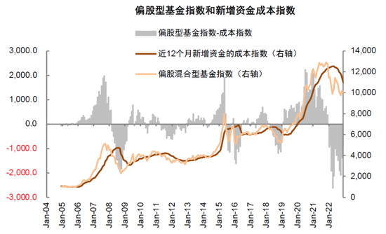 图表33:偏股型基金指数仍低于新增资金成本指数