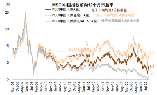 图表10:当前港股估值仍低于历史均值一倍标准差左右