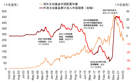 图表35:2021年9月至今外资主动资金流出中国市场近150亿美元,与2018-2019年期间相当