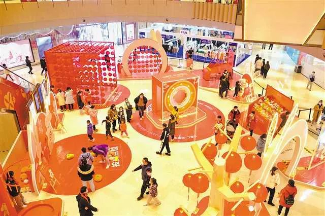 1月1日,南岸区南滨路长嘉汇购物中心,前来购物的市民络绎不绝。商家在大厅布置了游园活动,市民在休闲购物的同时也能参与游园玩耍,乐享元旦假期。特约摄影 郭旭/视觉重庆