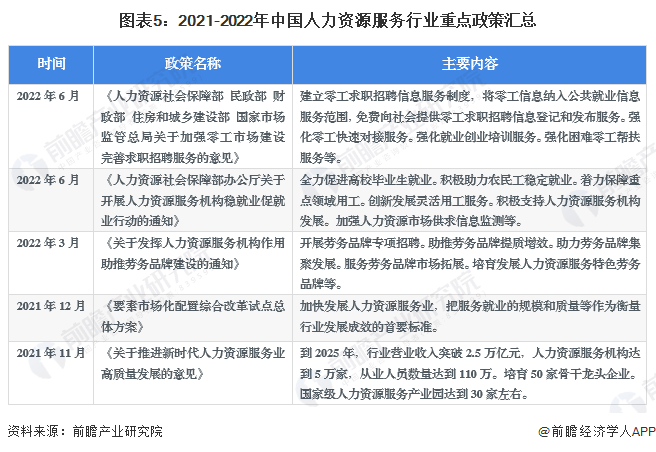 2021年以来为稳定就业,提升高校毕业生和失业人员就业水平,国家出台了一系列政策,支持人力资源服务行业提升规模并推动品牌建设。人力资源服务行业重点政策汇总如下: