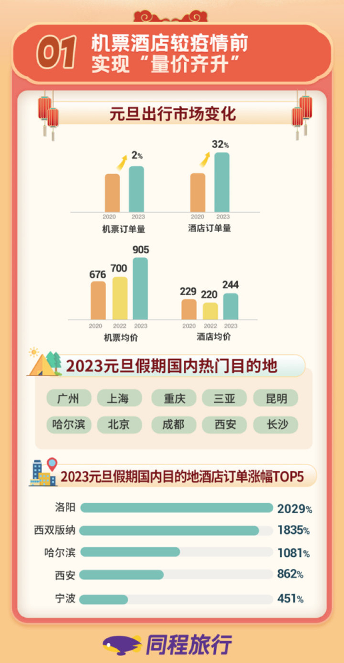 近日,各OTA平台发布了2023年元旦出游数据,在近期释放的多重政策利好之下,元旦旅游市场快速回暖,消费持续复苏。