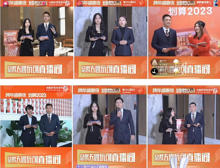 本次跨年直播盛宴,参与直播的嘉宾覆盖装饰材料销售公司总经理、副总经理以及各分公司领导,有90后也有80后、70后,不同年龄层的大咖阵容有着不一样的对生活的体验,他们分享不同维度的故事和对家的感悟。以产品为核心、针对需求全方面介绍直播间的优惠好物,带来的是一场更沉浸式、更互动式的丰盛视听体验。