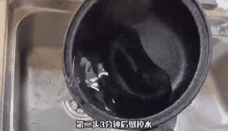 第二步3分钟后倒掉水,用洗洁精把锅洗干净,把水擦干