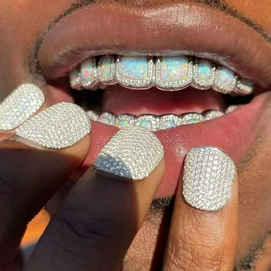 歌手Lil Nas X,整套钻石美甲加牙套,一时风头无量。