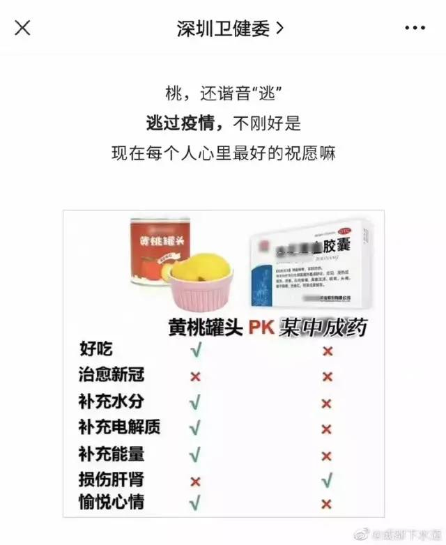 深圳卫健委:黄桃罐头比连花清瘟更有效!