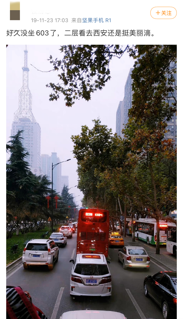 “603路就是港片里出现的那种双层大巴,还因为它是中英文双语报站。每个站点的英文名字通过公交车广播传出来时,一个农村来的外语系学生被迷住了。我一度以为,西安那会已经是一个国际化大都市。”